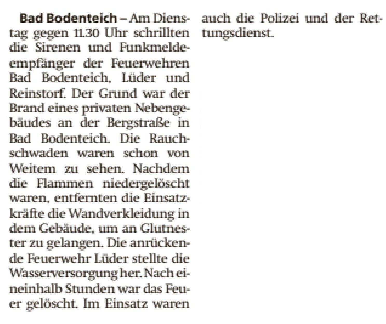 Dieses Pressearchiv der FF Lüder ist nicht vollständig; es enthält nur Presseberichte, die mir aktuell vorliegen.