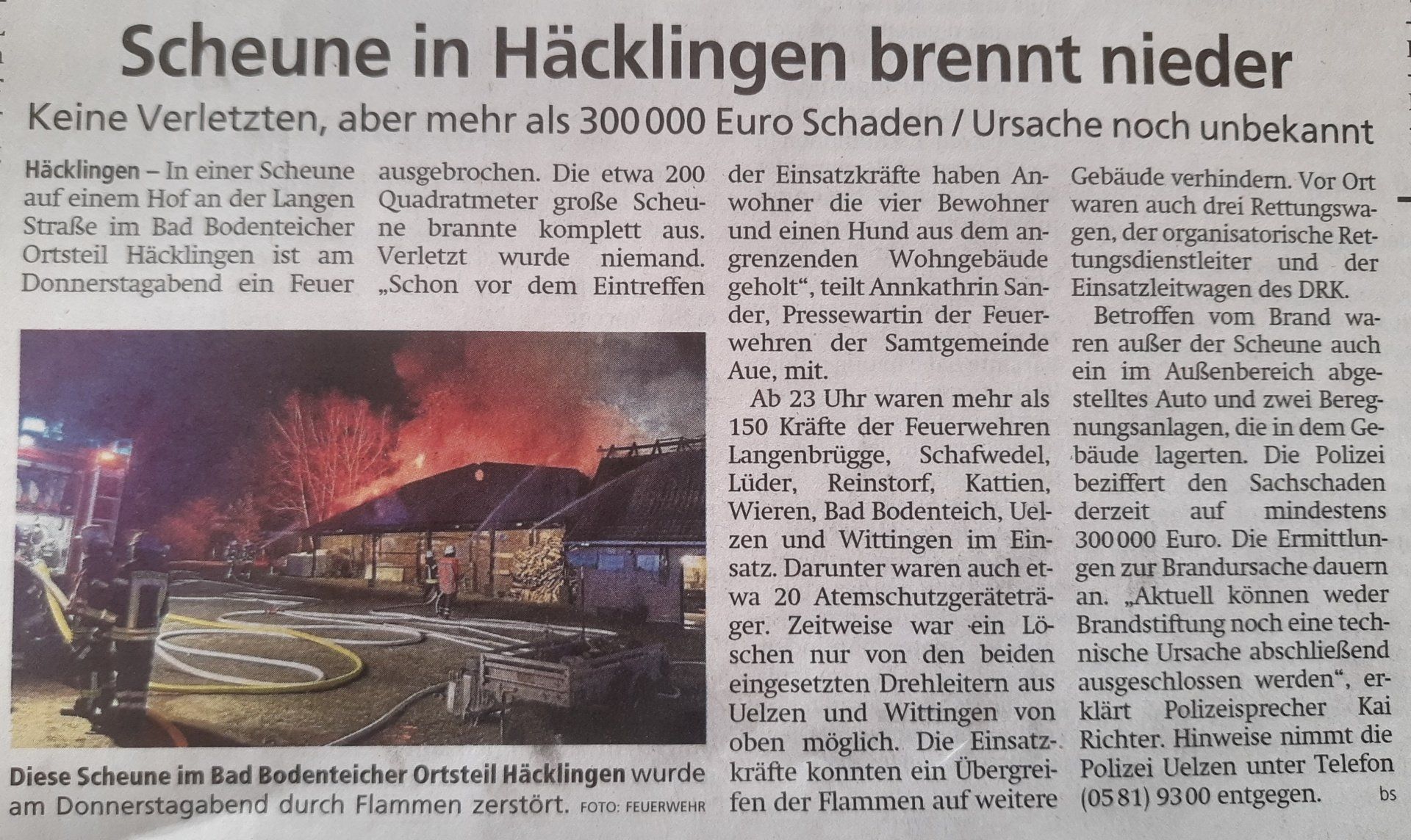 Scheunenbrand in Häcklingen: Großaufgebot an Feuerwehren rückt an