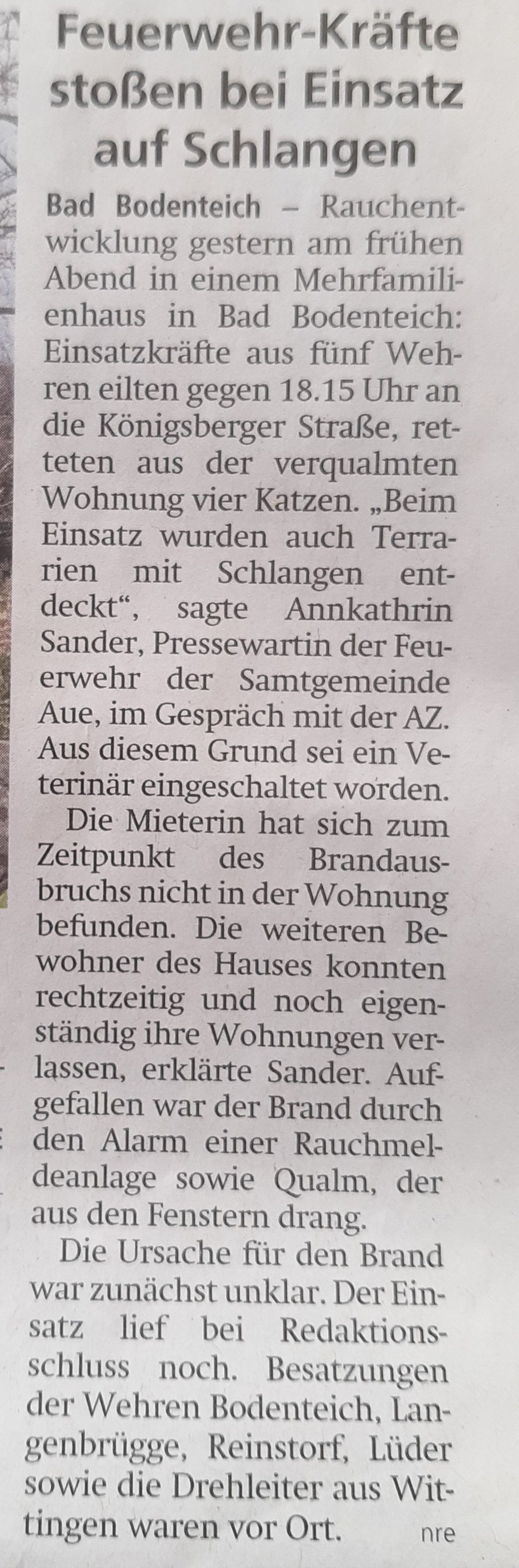 Brandeinsatz in Bad Bodenteich: Feuerwehr-Kräfte stoßen auf Schlangenterrarien