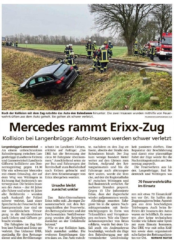 Kollision am Bahnübergang nahe Lüder - 86 - Jährige saß am Steuer des Autos